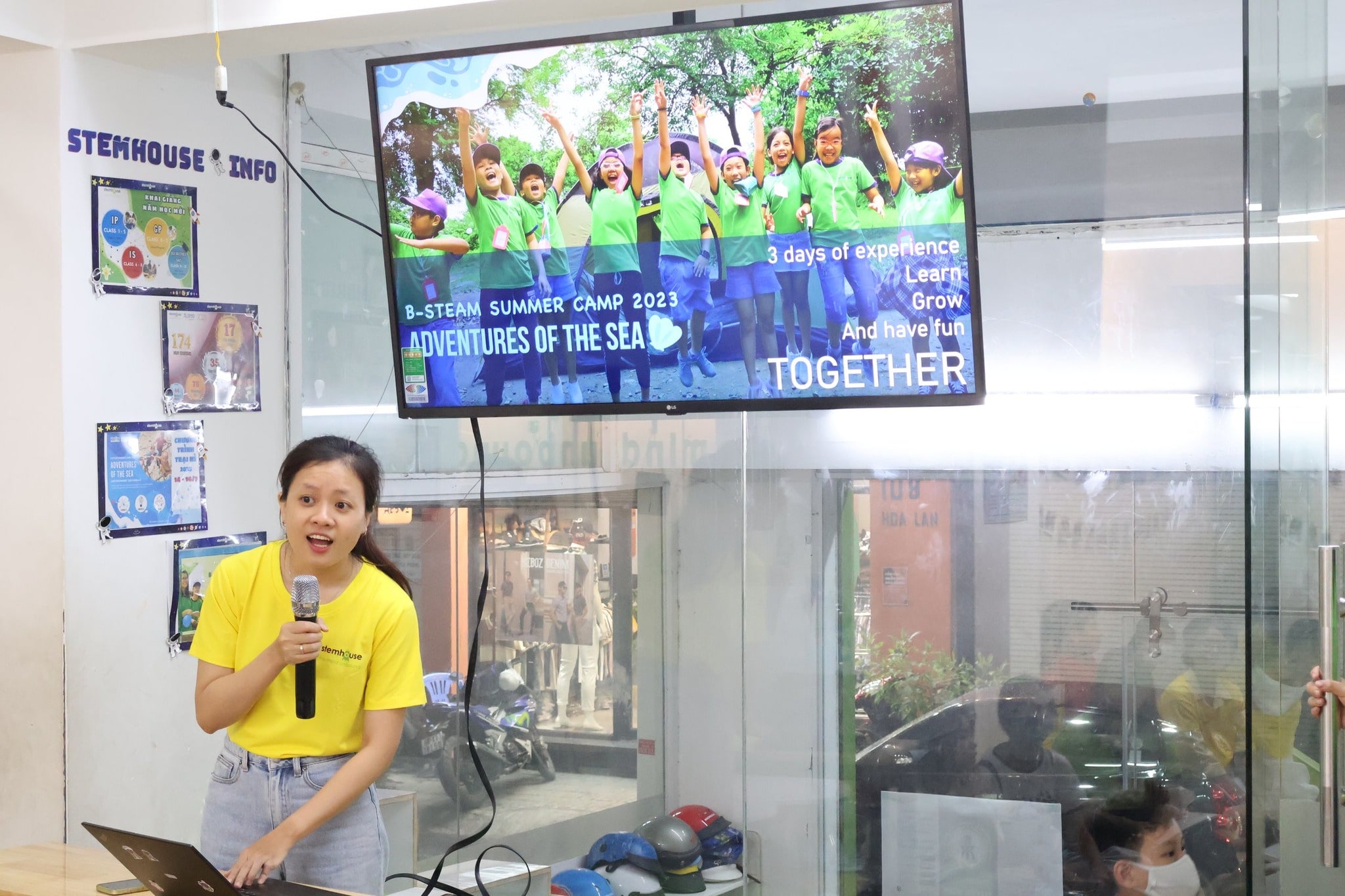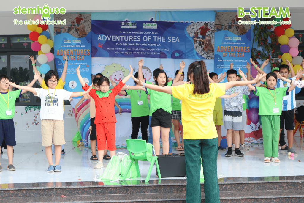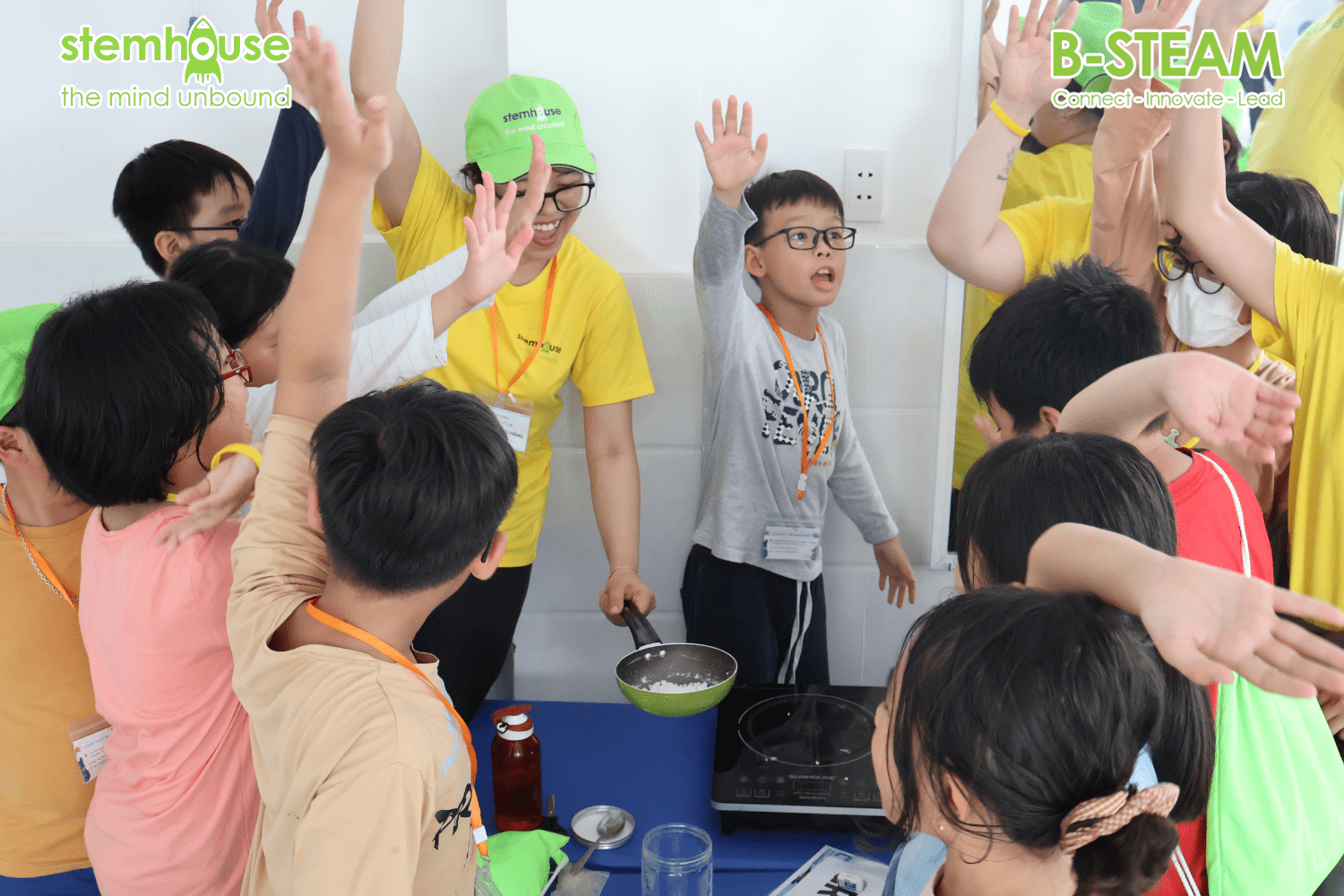 Không chỉ là một chương trình ngoại khóa, các hoạt động tại TRẠI HÈ B-STEAM chú trọng phát triển kỹ năng, kiến thức tổng quát cho trẻ. Các bạn đều chăm chú lắng nghe và đặt câu hỏi nhằm thỏa mãn trí tò mò của trẻ về thế giới xung quanh.