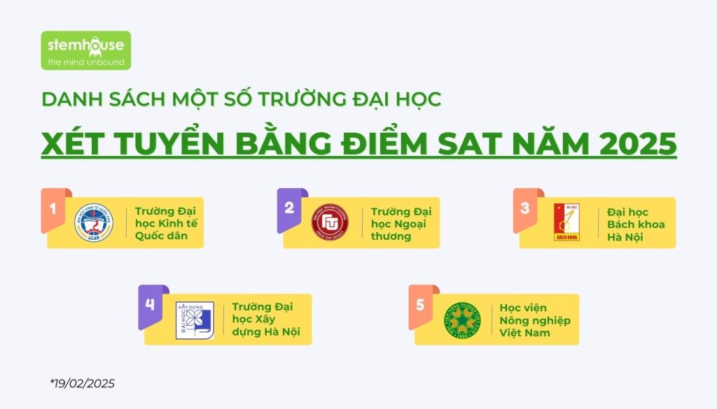 Dưới đây là danh sách một số trường đại học sử dụng điểm SAT để xét tuyển năm 2025: