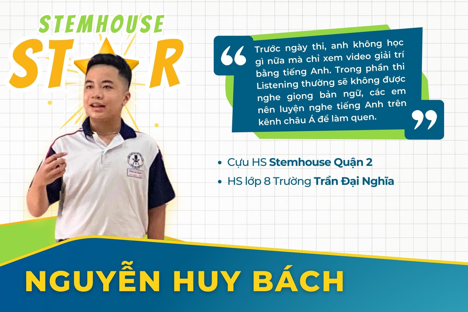 Tại Stemhouse, những học sinh xuất sắc không chỉ giỏi về kiến thức mà còn là những học sinh có tinh thần sáng tạo và đầy năng động. Bằng sự nỗ lực không ngừng, các bạn không chỉ đạt được thành tích cao trong học tập mà còn góp phần tích cực vào sự phát triển của cộng đồng Stemhouse.